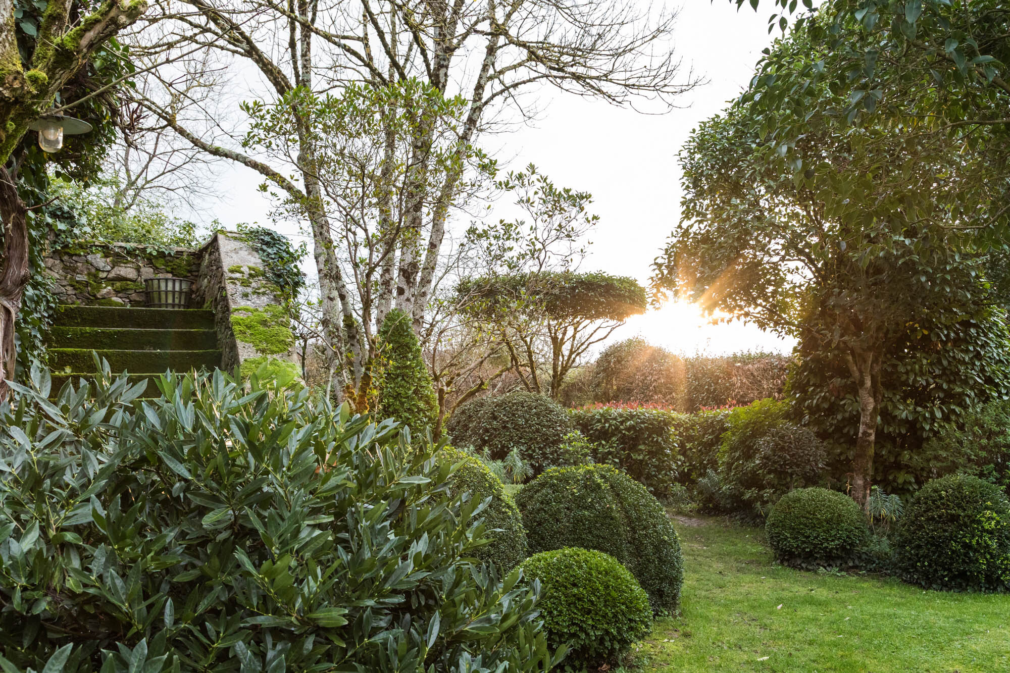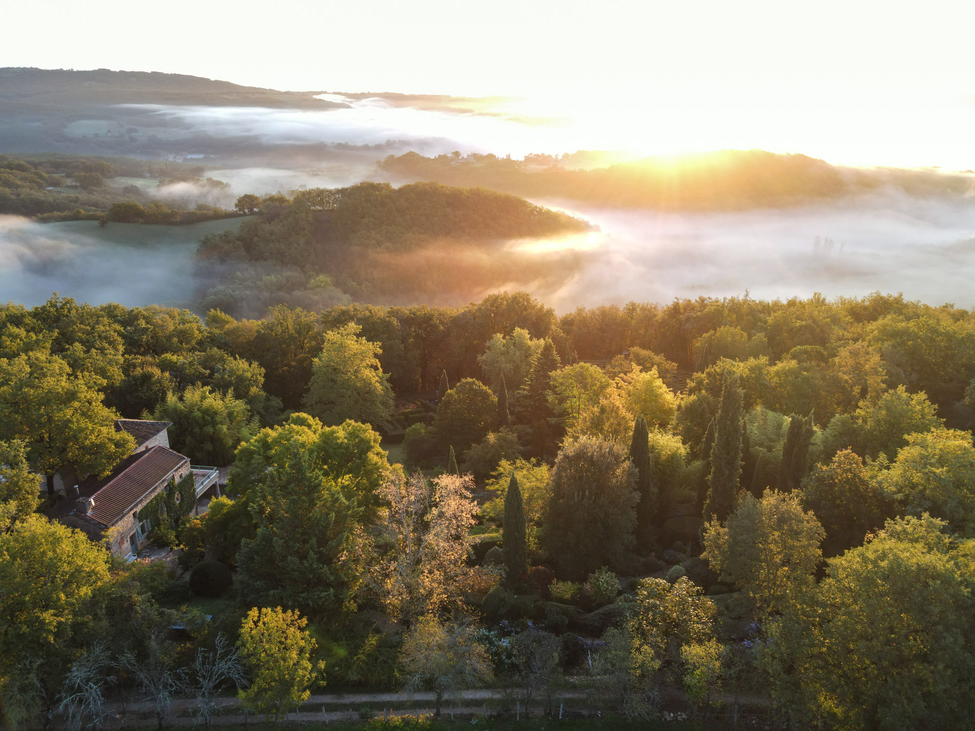 Sunrise on a peaceful morning in the garden of Le Presbytere