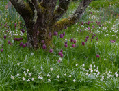 Fritillaria meleagris and Anemone nemerosa around a tree