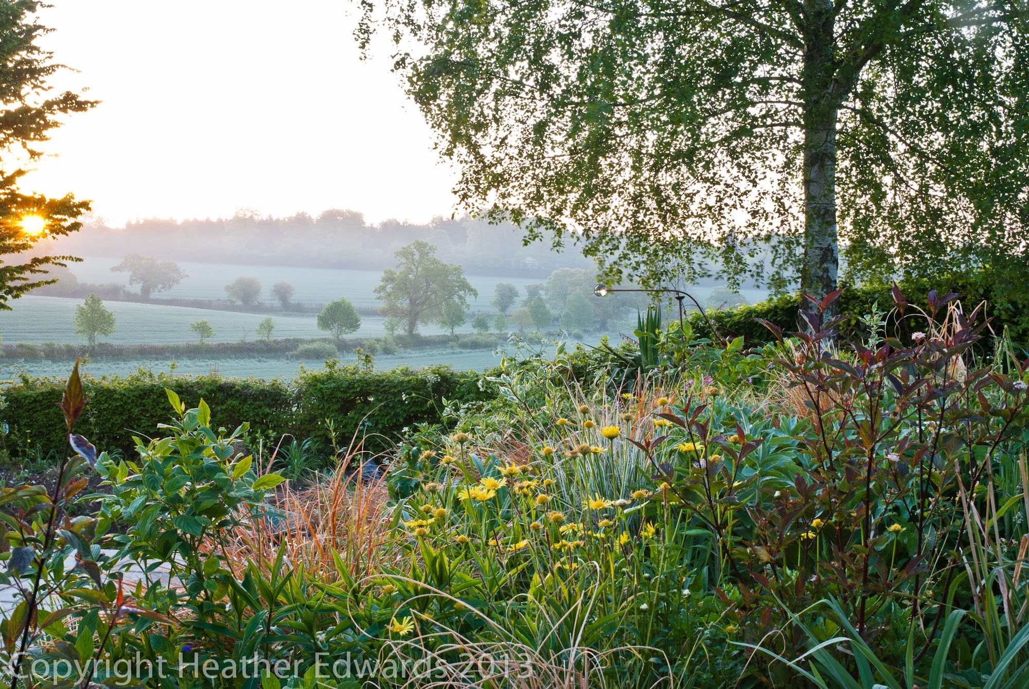 Perennial garden at sunrise